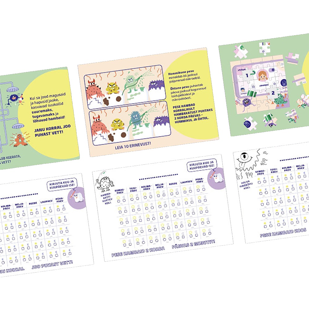 Календарь чистки зубов от Suukool помогает выработать хорошие привычки чистки зубов. В течение года Ваш ребенок может отмечать в календаре чистки зубов, когда он или она чистили зубы. Для начала подойдет любой календарный месяц, поскольку ребенок сам вписывает месяц и даты. Мозговые тизеры напоминают правила поддержания здоровья зубов.