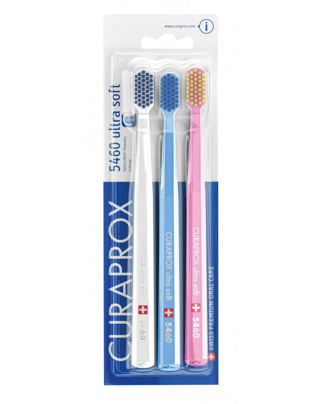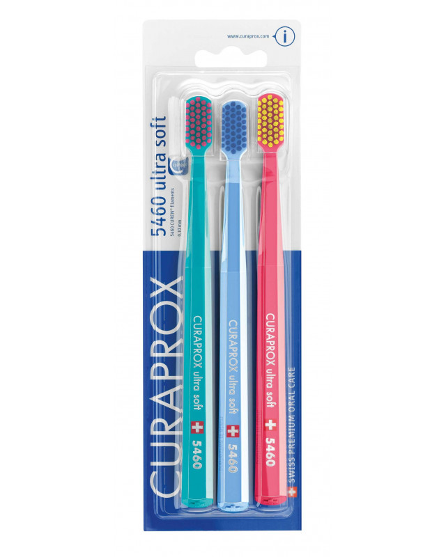 Набор из трех ультра мягких зубных щеток CS 5460 Ultra Soft Запатентованная щетина CUREN создает необыкновенно густую и эффективную чистящую поверхность. Щетинки CUREN плотнее, чем нейлон, меньше впитывают влагу и на 60% больше сохраняют свои очищающие свойства. Бережно очищают поверхность эмали, более тщательно разрушают и удаляют зубной налет, особенно в зоне десневой борозды. Маленькая и компактная головка зубной щетки, имеющая легкий наклон, обеспечивает правильное положение щетки в пришеечной зоне. Восьмигранная ручка из легкого полипропилена помогает чистить зубы под правильным углом. Щетка содержит 5460 щетинок. Произведена в Швейцарии.
