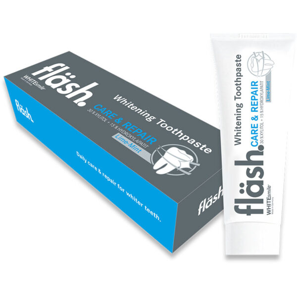 Repair function by 17 % hydroxyapatite. 1100ppm fluoride. Acts against sensitive teeth. Specifically designed for the use after tooth whitening treatments. Without SLS. Without Triclosan. Pleasant Lemon-Mint flavor.