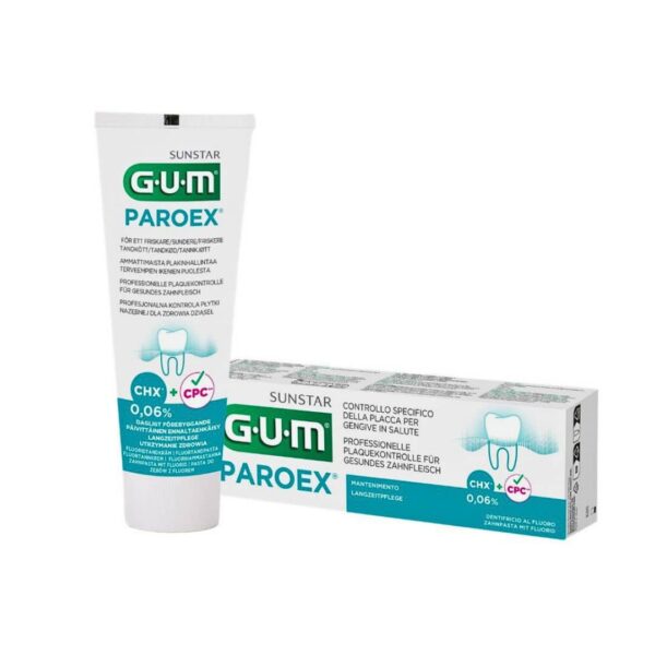 The GUM PAROEX range offers professional plaque control for optimal gum health. For best results, we recommend brushing with GUM PAROEX Maintenance Toothpaste 0,06% after every meal, or at least twice daily, for three minutes at a time using a soft toothbrush.