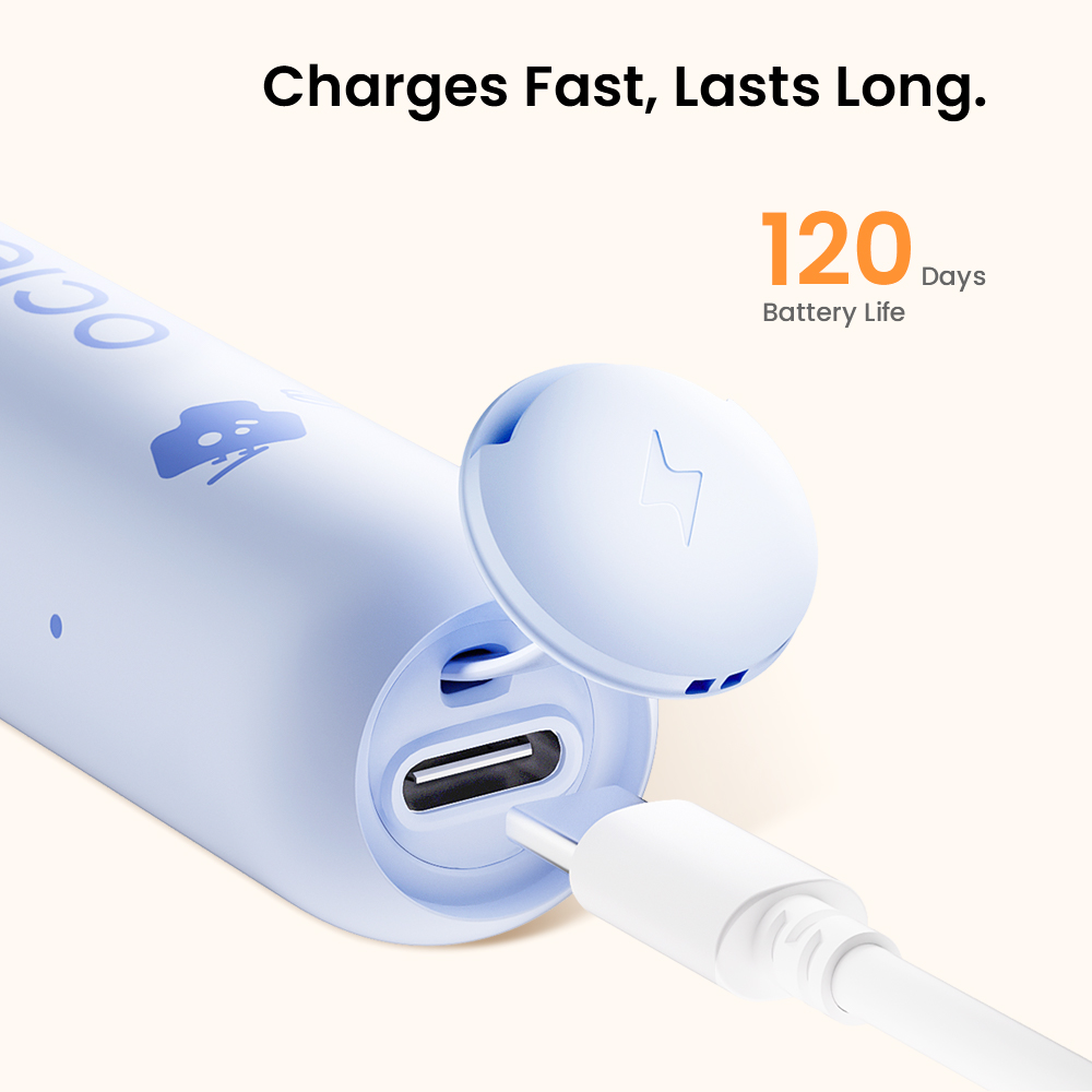 Микровибрации обеспечивают тщательную чистку, оставаясь при этом деликатными к чувствительным детским зубам и дёснам.