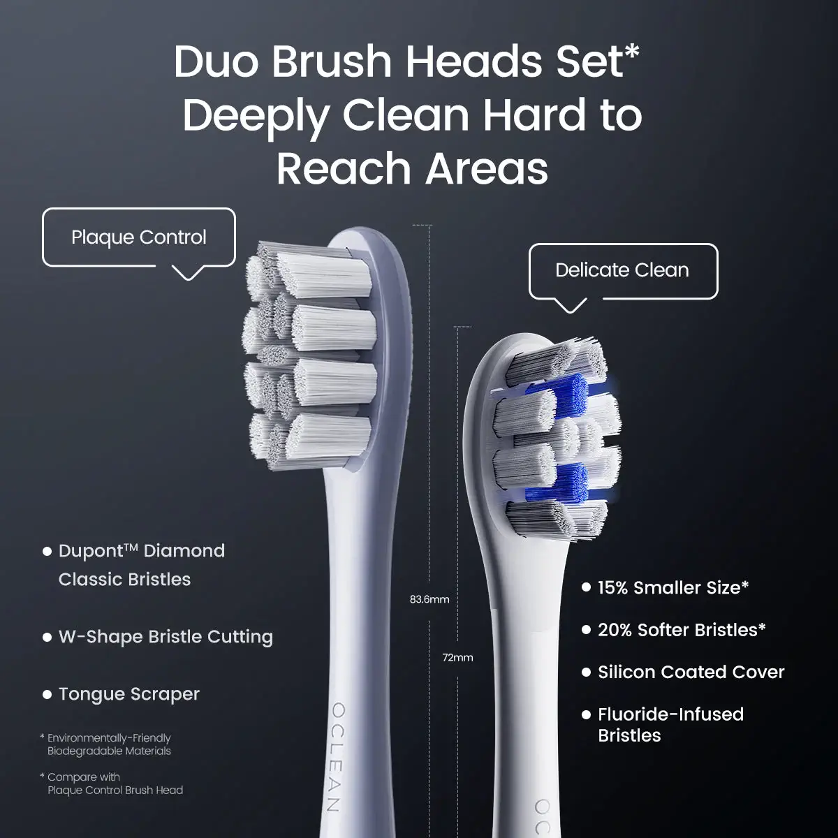 Brush Handle x 1, travel case * 1,Plaque Control Brush Heads x 2, Delicate Care Brush Heads x 2, 2-in-1 Wall Mount Holder & Magnetic Charger Base x 1, USB Cable x 1, User Manual x 1