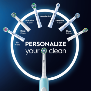 The Oral-B round head envelops each tooth for cleaner teeth and healthier gums, removing up to 100% more plaque compared to a hand toothbrush.