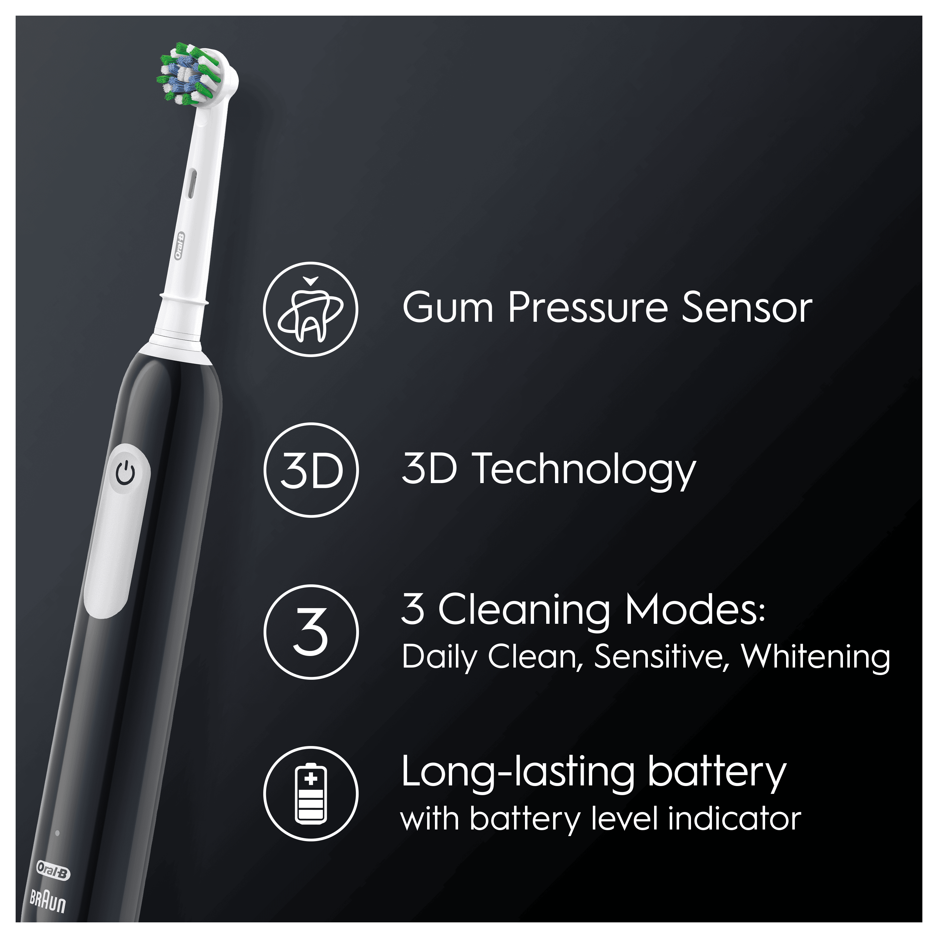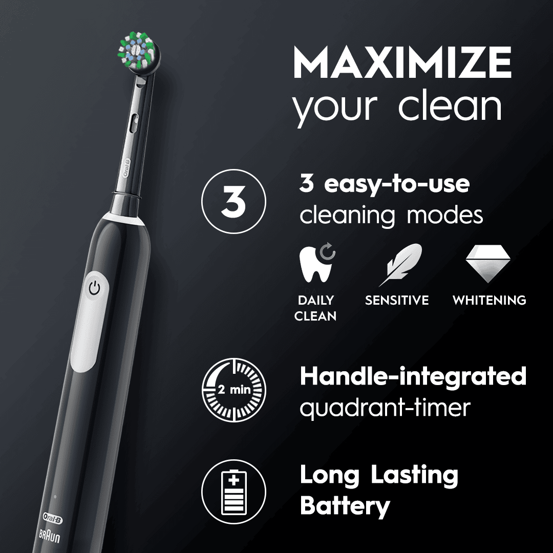 Круглая головка Oral-B обхватывает каждый зуб, обеспечивая чистоту зубов и здоровье дёсен, удаляя до 100 % больше налёта, чем ручная зубная щётка.