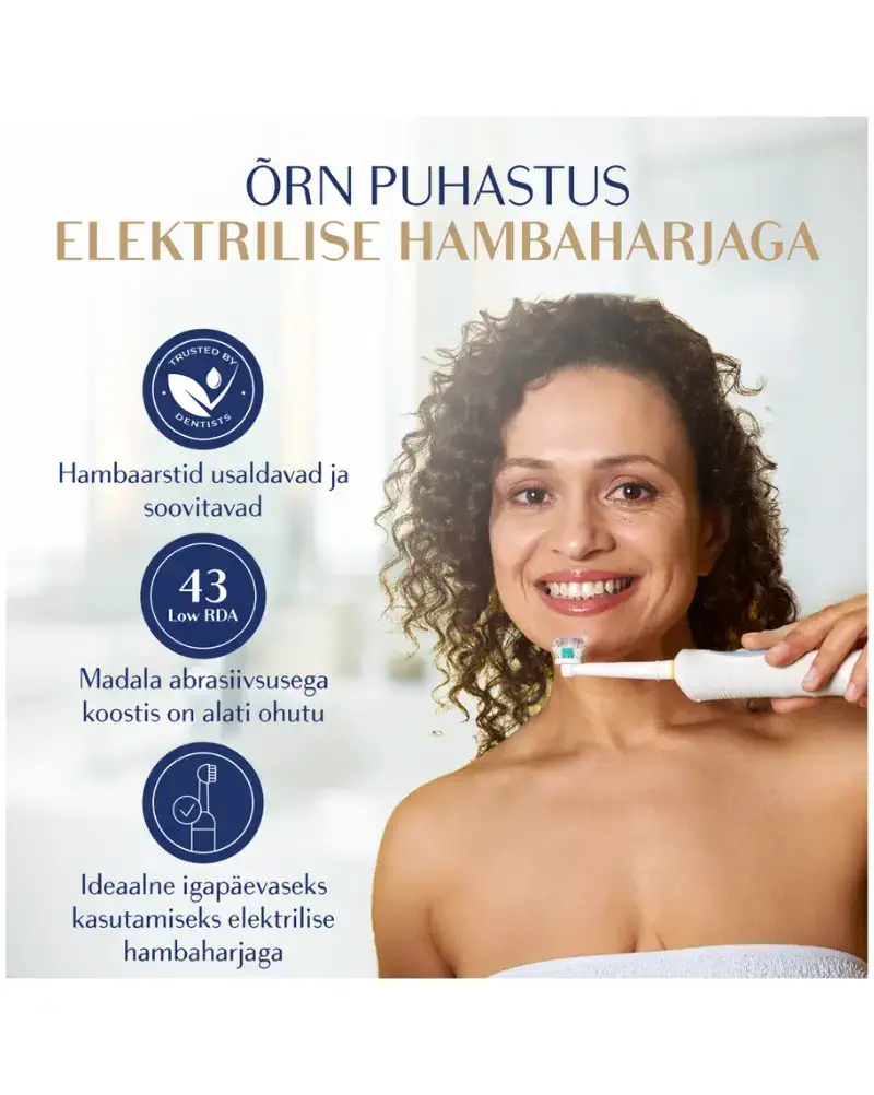 Применение: Чистите зубы 2-3 раза в день не менее 3 минут. Используя ручную зубную щетку, делайте выметающие или круговые движения. Нанесите на зубную щетку количество зубной пасты размером с горошину. Если вы хотите почистить зубы после еды, рекомендуется подождать не менее 30 минут. Подходит для взрослых.