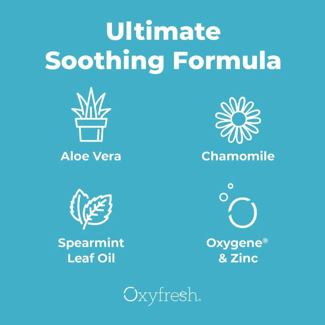 Этот успокаивающий гель содержит терапевтическую смесь ингредиентов, включая алоэ вера, ромашку, фолиевую кислоту и эфирное масло мяты. В его составе есть запатентованная комбинация Oxygene® и цинка, которая обеспечивает увлажнение, оптимальное дезодорирующее действие и успокаивающее облегчение, на которое можно рассчитывать.