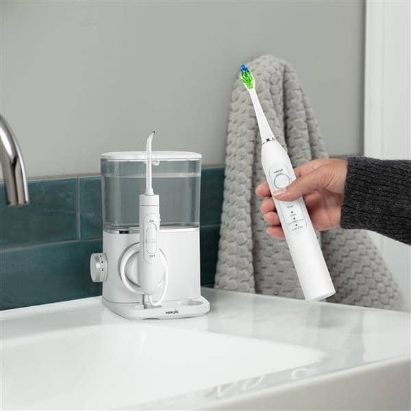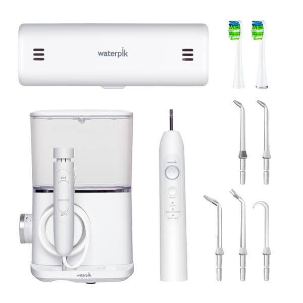 Waterpik SENSONIC Complete Care combines the WATERPIK water flosser and the award-winning SENSONIC toothbrush to give you individually controllable oral care in one device.