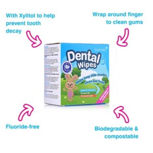 Brush -Baby biolagunevad ja komposteeritavad igeme- ja hambapuhastuslapid ksülitooliga mis aitavad beebi hammaste tulekul igemeid puhastada ning rahustada.