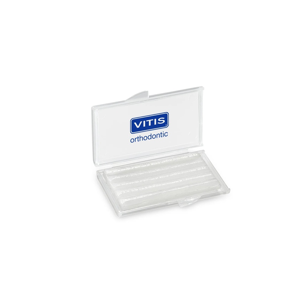VITIS Ortodontiline Vaha kaitseb pehmete kudede, näiteks suu sisepõskede, ärrituse eest, mida põhjustavad breketid ja klambrid.