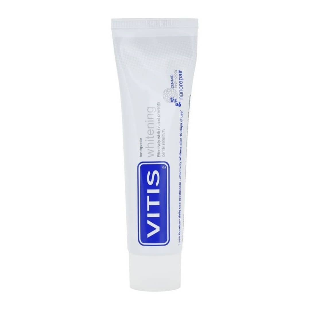 VITIS Whitening hambapasta on igapäevaseks kasutamiseks mõeldud hambapasta, mida soovitatakse inimestele, kelle hambad on tee, kohvi, suitsetamise jm tõttu värvi muutnud.